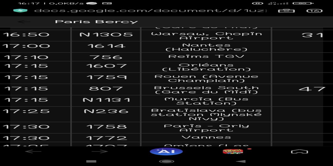 Kort voor 18u sprak een dame me daar aan, of ik wist waar de bussen stopten. Zij bleek een Eurostar-trein naar Brussel geboekt te hebben die uitgevallen was door de stroompanne en ze hadden haar dan maar een ticket voor Flixbus gegeven. Omdat ik toch ook naar daar moest zijn we samen teruggekeerd naar Bercy.